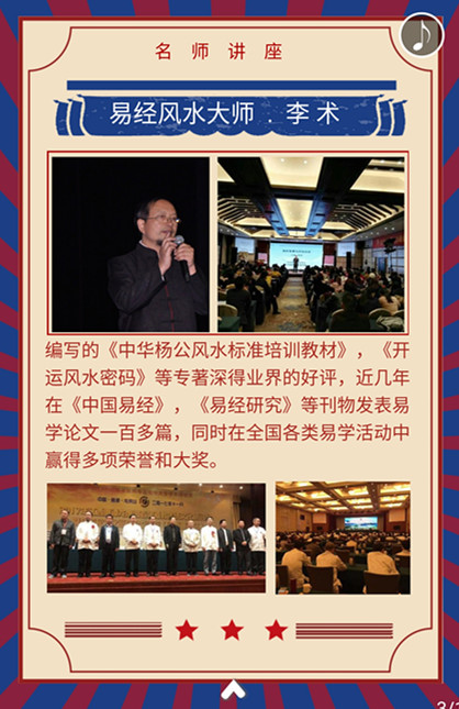 易经风水大师演讲PPT演示文档,图文并茂,让来宾结合李术老师深入浅出的讲解,学到了许多有用的风水知识。