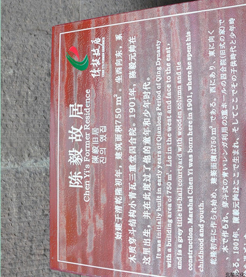 陈毅故居的来龙由老祖山大坡起到后山黄岭坡乙龙入首,钳窝出脉,整体建筑为乾山巽,左水倒右出丙午方,故居前面丙午方一锁口水塘。地理书云:乾山巽向,左水倒右水出丙午方,合文库消水进神水法,禄存流尽佩金鱼,主发富发贵,福寿双全。外墙入户大门面向来龙的老祖山,为倒挂金钩、回龙顾祖格局,收故居左上方贪狼朝水,为辛山乙向,左水倒右出巽巳方,为人元龙人元向收人元水,龙山水一卦纯清之坐向,是造就伟人、英杰的典型风水坐宅。地理书云:辛山乙向,左水倒右出巽巳方为水局墓向,乙向巽流清富贵,发富发贵,人丁大旺,福寿双全。中华杨公风水研究院,中华易经风水学会,成都玄星文化传播公司,四川名人故居风水专家考察团,学习考察名人阳宅风水,名人阴宅风水,名人祖坟风水,杨公风水弟子班,玄星风水研修班,欢迎易学爱好者来四川学习考察陈毅故居风水,陈毅祖坟风水。